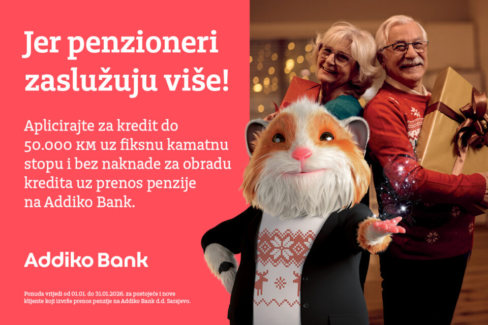 Nova godina donosi nove mogućnosti, a Addiko Bank d.d. Sarajevo je pripremila posebnu ponudu namijenjenu našim najiskusnijim klijentima, umirovljenicima. Ponuda donosi povoljnije uvjete i dodatnu podršku kako bi svakodnevne financijske obveze bile lakše, a početak godine bezbrižniji.