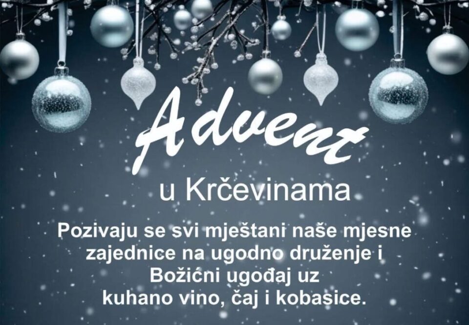 U Krčevinama će se ove nedjelje, 7. prosinca, održati adventsko druženje namijenjeno svim mještanima mjesne zajednice. Organizatori – Omladina uz vjerne veterane – pozivaju sve da dođu na plato ispred doma mjesne zajednice i uživaju u ugodnoj blagdanskoj atmosferi.