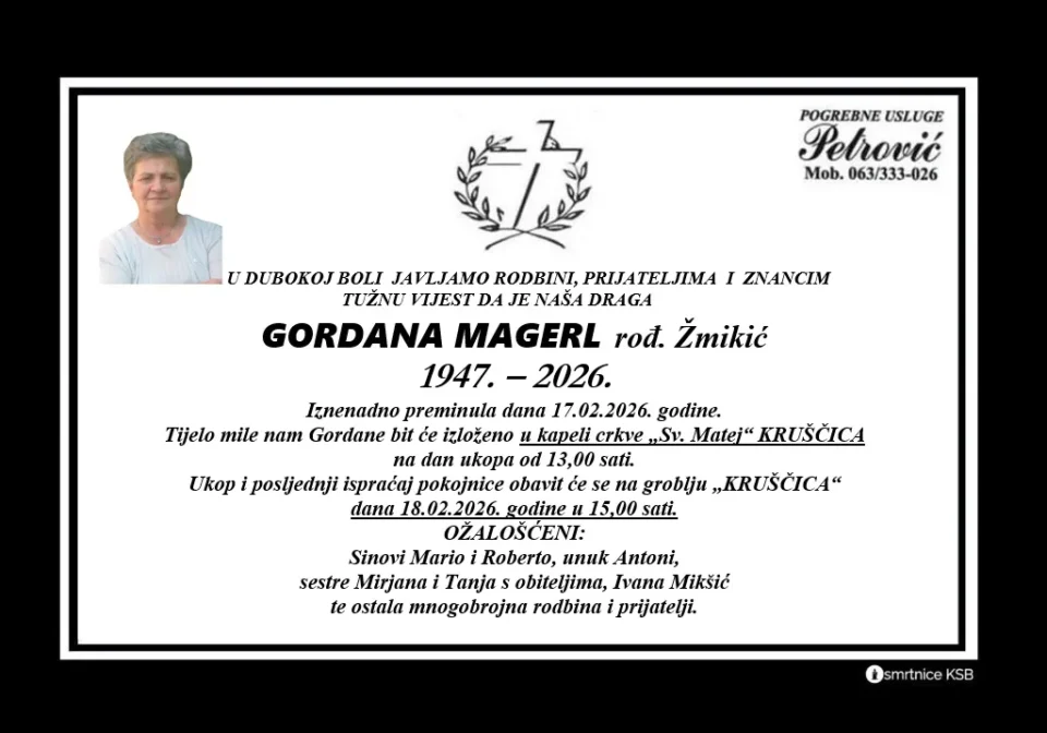Jučer smo s tugom primili vijest kako je u preminula Gordana Magerl (1947. – 2026.), umirovljena prosvjetna djelatnica iz Viteza koja je desetljećima predano radila s djecom i mladima te uspješno odgojila brojne generacije Vitežana.