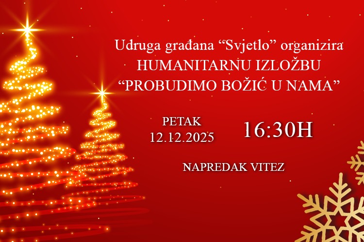 Lokalne vijestiHumanitarna izložba ”Probudimo Božić u nama” by Uredništvo10/12/2025 0 Udruga građana ”Svjetlo” organizira humanitarnu izložbu ”Probudimo Božić u nama”. Izložba će se održati u petak, 12. prosinca 2025. godine s početkom u 16:30 sati u dvorani HKD Napredak Vitez. Pokažimo humanost i podijelimo radost Božića.