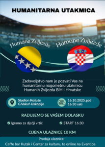🎟️ Ulaznice: Cijena 10 KM – kupnjom ulaznice sudjelujete u humanitarnoj akciji za dječi vrtić i imate priliku osvojiti vrijedne nagrade!