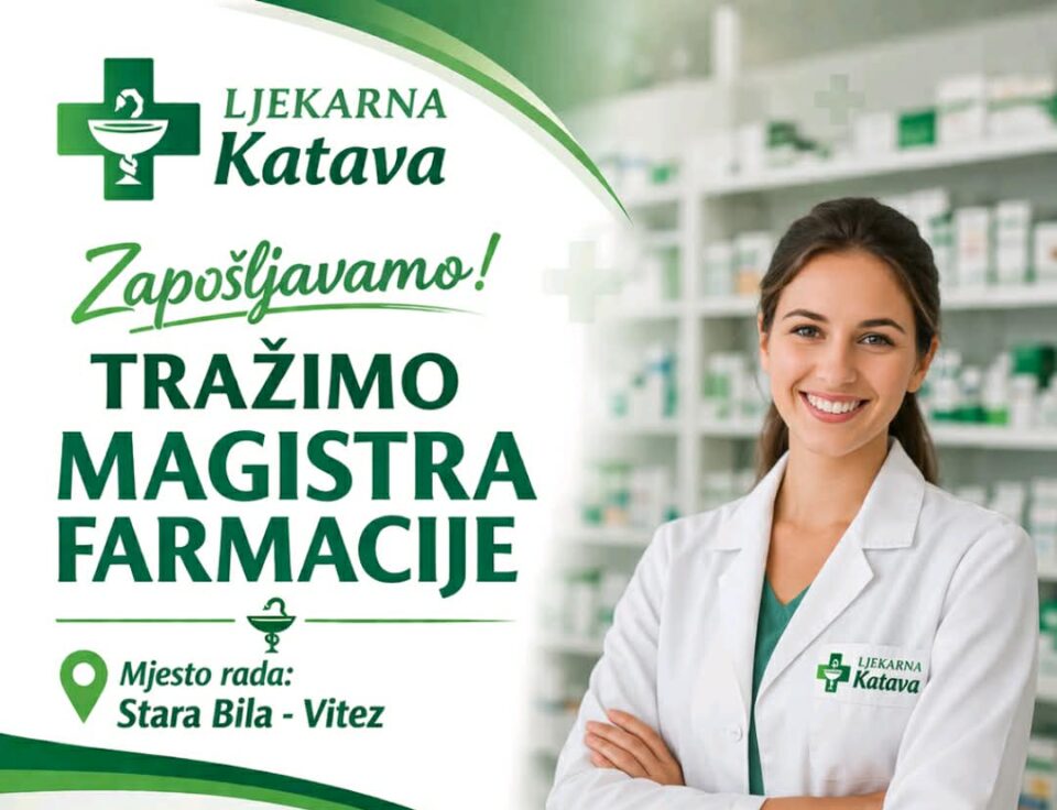 Ljekarna Katava, zbog proširenja opsega poslovanja, raspisuje natječaj za prijem u radni odnos na poziciji magistar farmacije (m/ž).