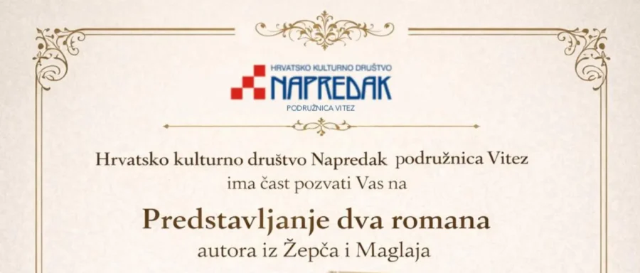 Ilija Ivišić je nova pojava na književnoj sceni, kamenite prepreke su njegov drugi roman koji prati sudbinu izbjeglica u posljednjem ratu i nešto o čemu malo svjedočimo – nasilno pokidanim ljubavnim vezama. Prilikom retrospekcije autor u nizu sličica bogatih stilsko-izražajnim sredstvima, oslikava svekoliki spektar emocija pa i utjecaj cvijeća na raspoloženje likova. Predstavljanje će biti upriličeno 22.1. 2026. u Napretkovom domu u Vitezu s početkom u 19,00 sati. Marinčićev roman će predstaviti Anto Zirdum, a Ivišićev ce predstaviti Anto Marinčić. U glazbenom dijelu će nastupiti Viteški akordi i Napretkov Rittter ethno ansambl.