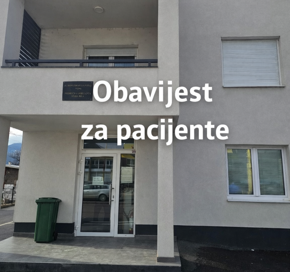 Obavijest za pacijente Područne ambulante Stara Bila