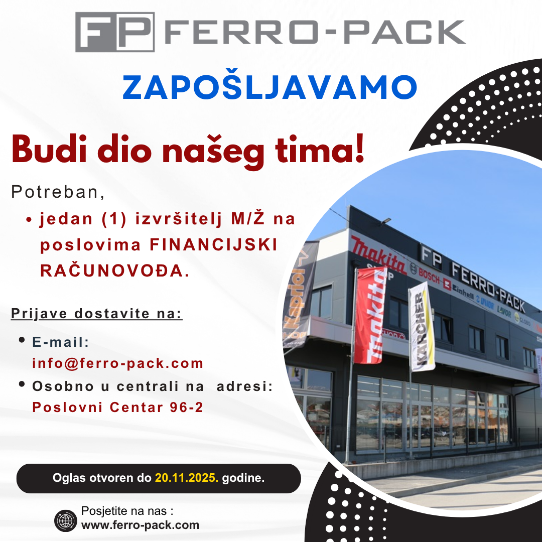 Oglas ostaje otvoren do 20.11.2025 ili do popune radnog mjesta.