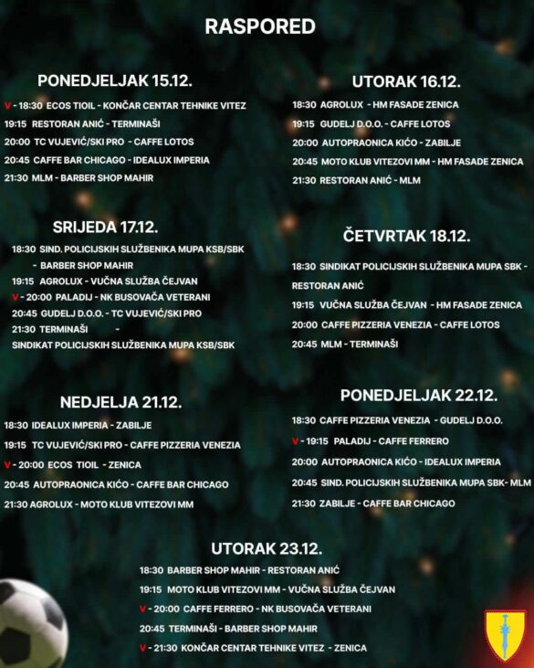 Večeras počinje 4. Božićni malonogometni turnir u Gradskoj sportskoj dvorani u Vitezu.