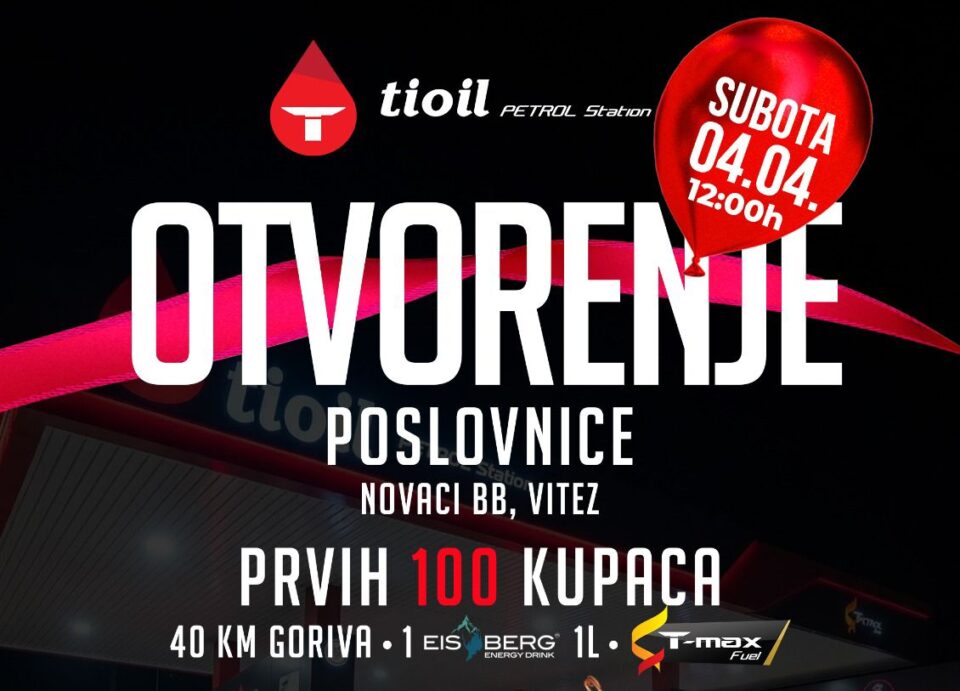 U subotu, 4. travnja s početkom u 12:00 sati, u naselju Novaci bb u Vitezu bit će upriličeno svečano otvorenje nove benzinske postaje Tioil Petrol, koja donosi osvježenje u ponudi goriva i pratećih usluga na ovom području.